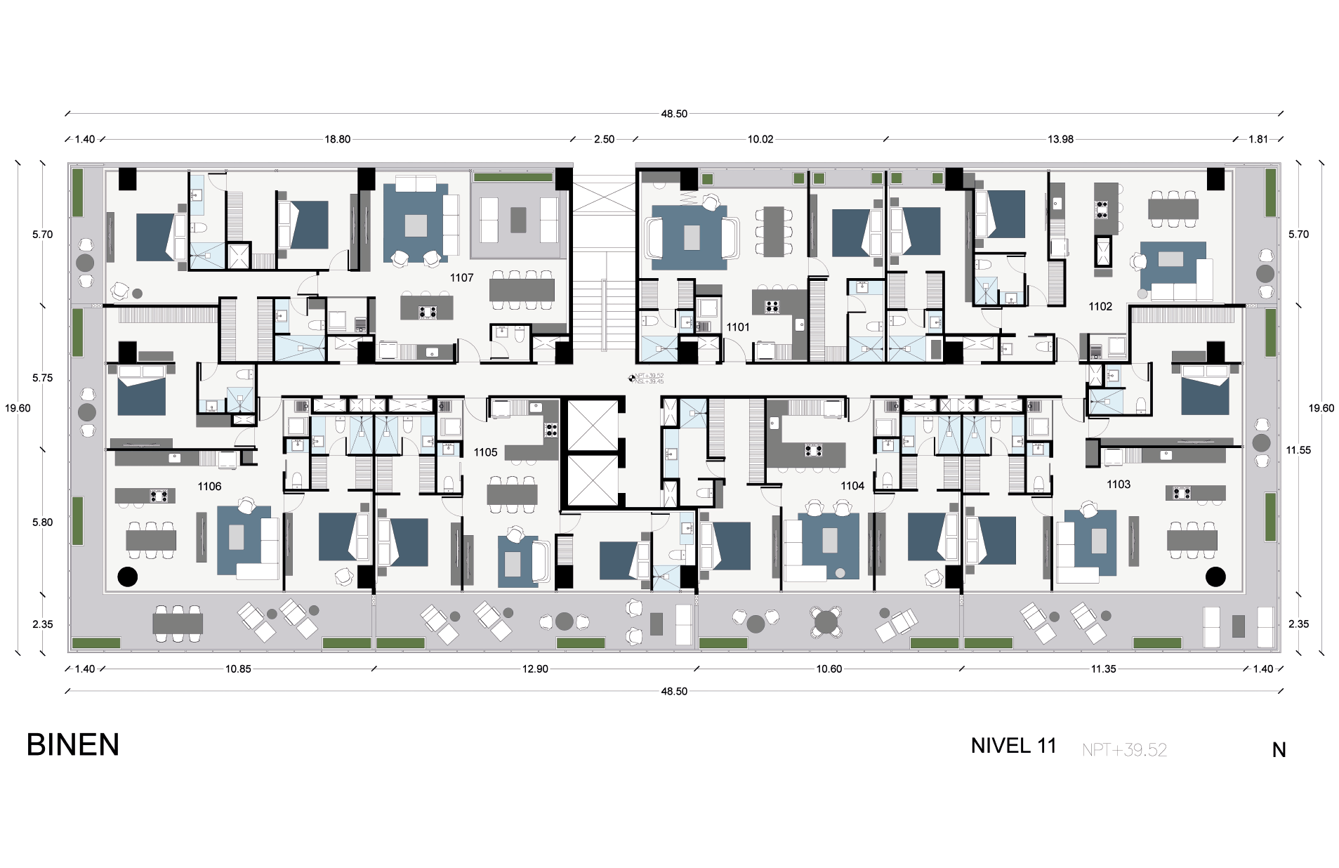 Quisimos plasmar esta forma de vida con la palabra alemana Binen, que significa colmena. Es fascinante la perfección del trabajo comunitario de la abejas al interior del panal y lo solitarias que vuelan fuera de la colmena.